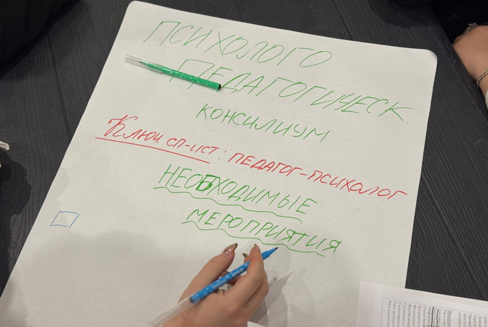 Основное внимание организаторы уделили роли воспитательной работы, анализу модуля «Профилактика и безопасность» рабочей программы воспитания, а также отработке алгоритмов взаимодействия педагогов при выявлении детей «группы риска» на практических кейсах, затронули тему по введению ГИС «Профилактика».