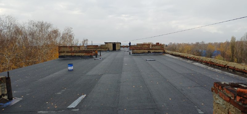 Специалисты уже уложили новое кровельное покрытие и сейчас занимаются устранением дефектов, монтажом дополнительных элементов для обеспечения герметичности и защиты от внешних воздействий.