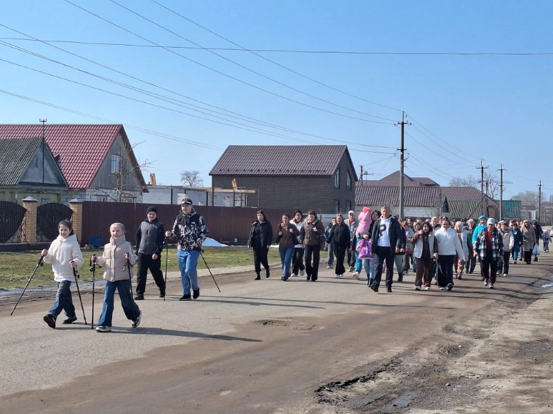 В шествии приняли участие сотрудники образовательных учреждений, администрации, а также активные жители поселка.