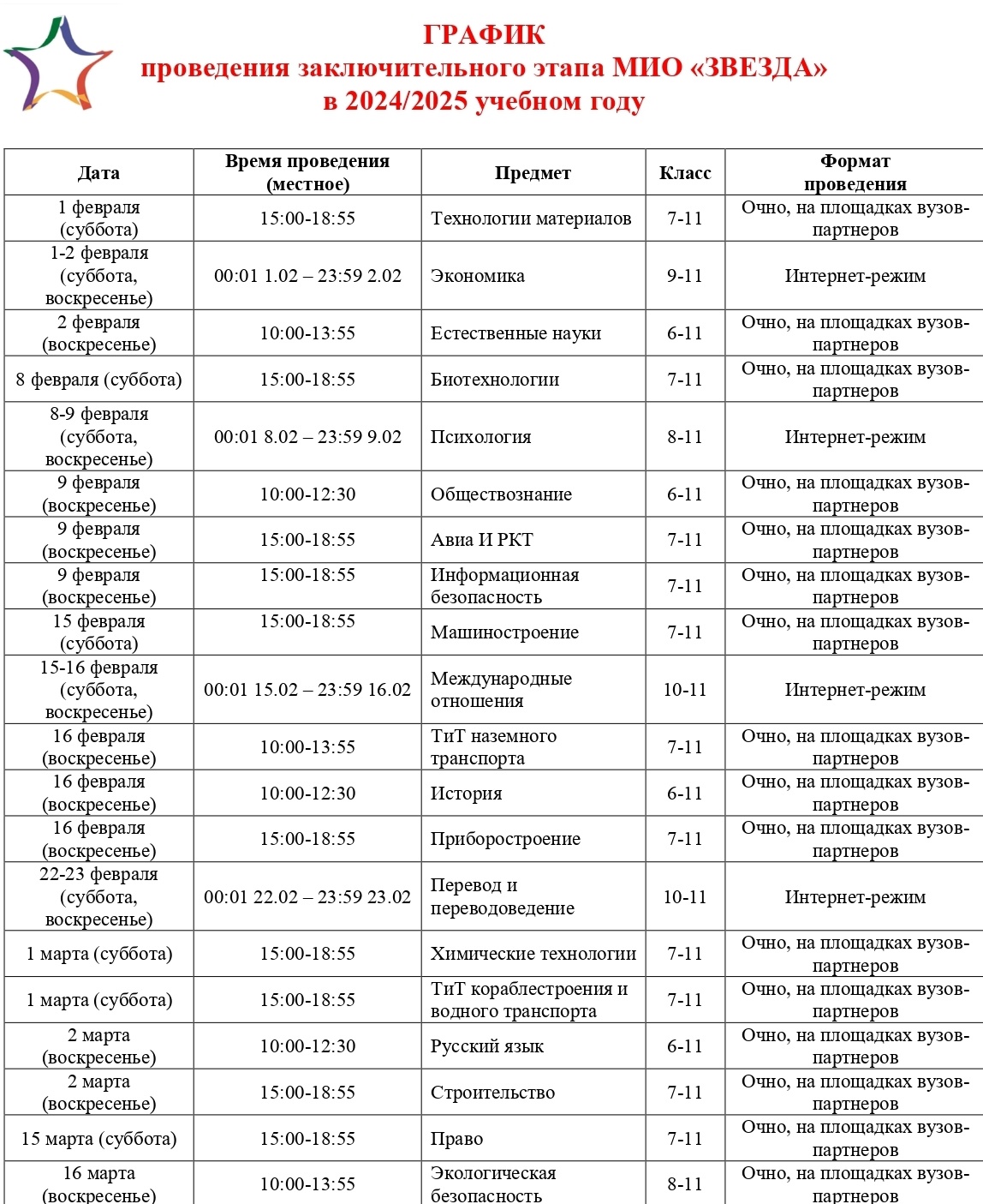 Опубликован график заключительного тура инженерной олимпиады «Звезда»