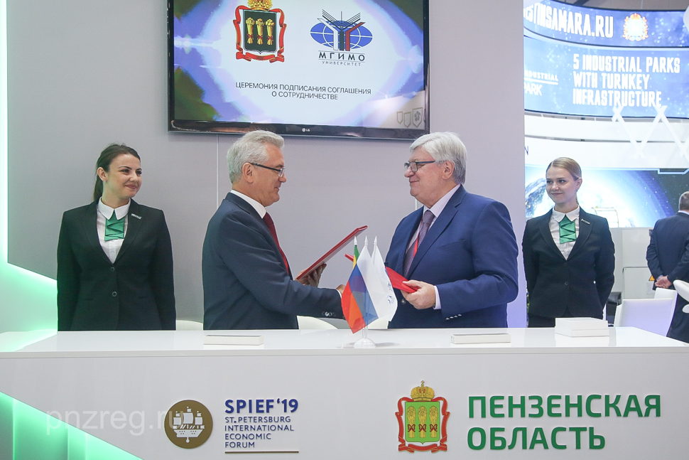 Губернатор Пензенской области Иван Белозерцев подписал соглашение о сотрудничестве с ректором МГИМО МИД России Анатолием Торкуновым. Встреча состоялась в пятницу, 7 июня, на Петербургском экономическом форуме. Об этом сообщили в пресс-службе регионального правительства.