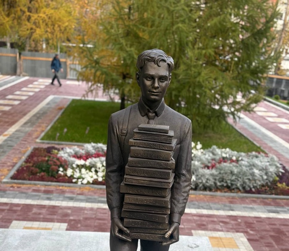 08 October 2025 г., РИА Пензенской области. На площадке перед первым корпусом Пензенского государственного университета установили новый арт-объект - памятник Студенту с тубусом-копилкой, в который можно бросить монетку на удачу перед экзаменами.