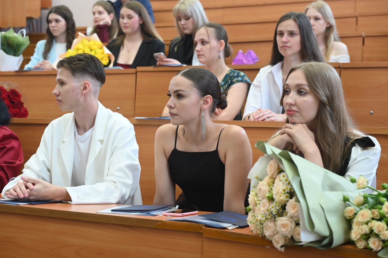 Заместитель декана по учебной работе Людмила Гурьянова подчеркнула трансформацию студентов за годы обучения: «Вы пришли к нам робкими абитуриентами, а покидаете стены университета уверенными в себе специалистами. Пусть память о тех, кто помогал вам на этом пути, останется с вами».