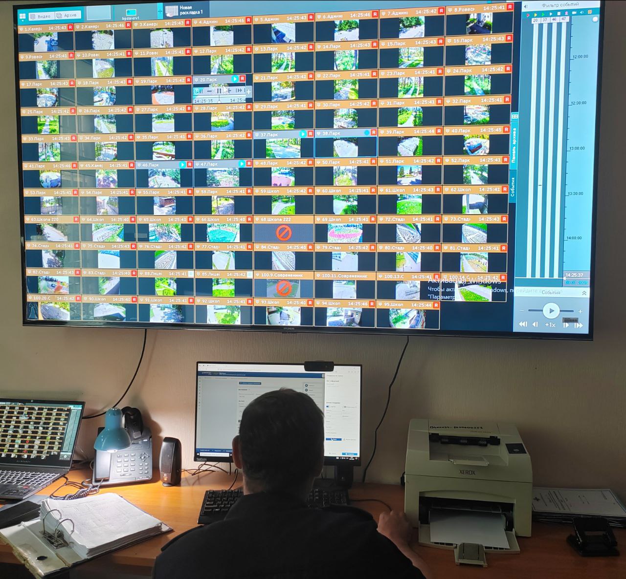 «Трансляция выводится на огромные экраны, которые находятся в Управлении гражданской защиты и дежурной части полиции города. Это делается как для постоянного контроля за обстановкой, оперативного реагирования на правонарушения, так и для раскрытия преступлений потом, при обращении жителей в правоохранительные органы», - добавил глава города.