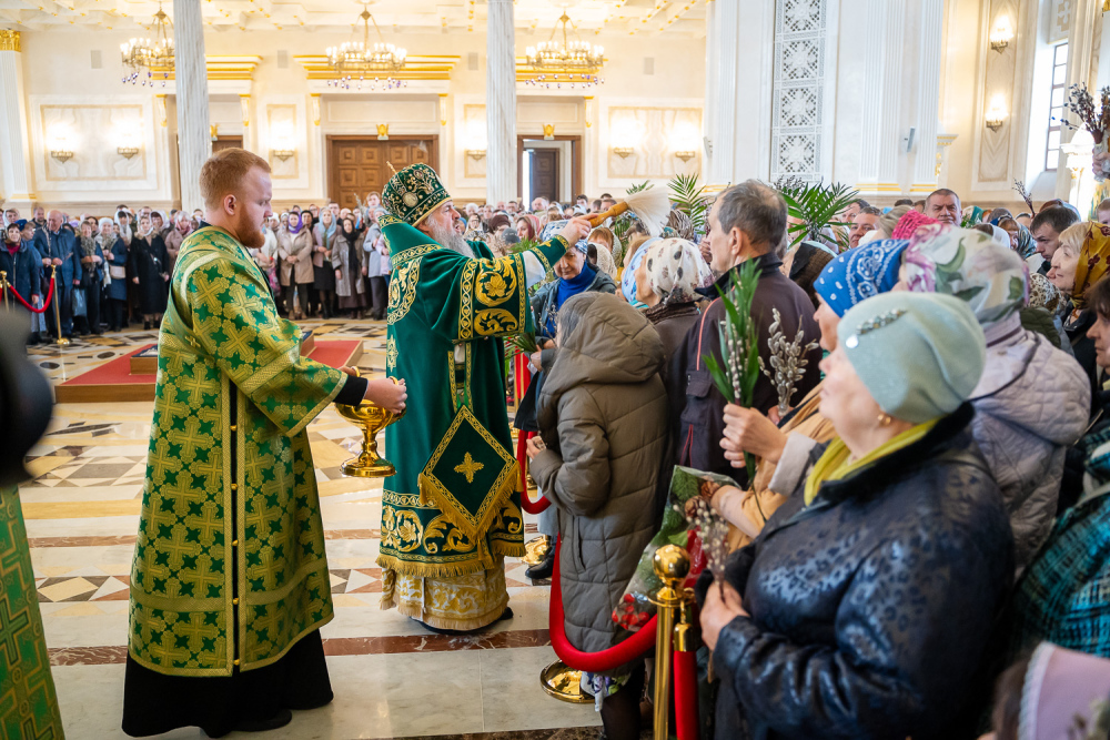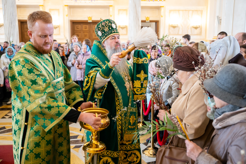 Архипастырь окропил в Спасском соборе ветви верб святой водой