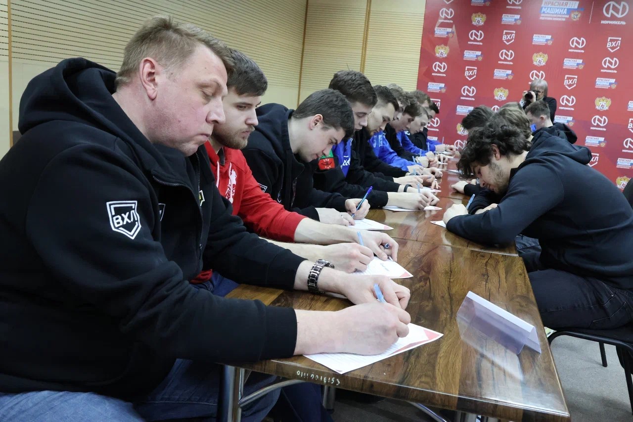 27 января 2025 г., РИА Пензенской области. Министр физической культуры и спорта Пензенской области Евгения Бочкарева, депутат Госдумы Дмитрий Каденков, хоккеисты команды «Дизель» и представители «Молодой Гвардии» написали письма поддержки участникам СВО.