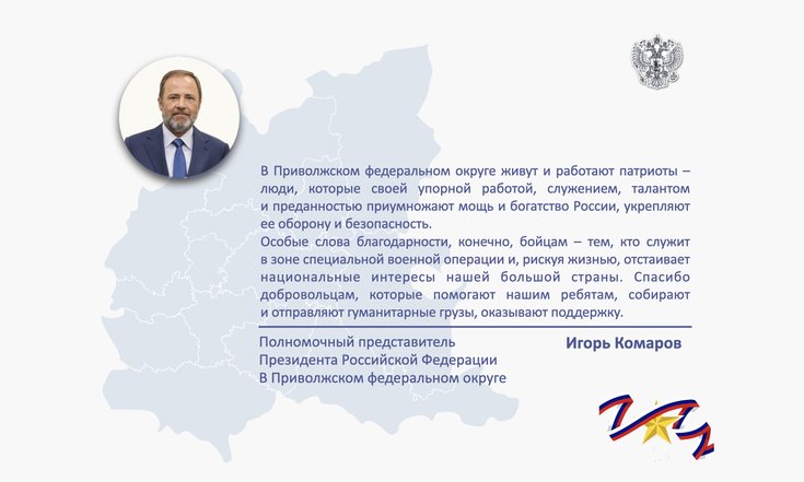 23 февраля 2025 г., РИА Пензенской области. Полномочный представитель Президента РФ в Приволжского федерального округа Игорь Комаров поздравил жителей ПФО с праздником.