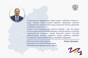 Особые слова благодарности, конечно, бойцам - тем, кто служит в зоне специальной военной операции и, рискуя жизнью, отстаивает национальные интересы нашей большой страны. Спасибо добровольцам, которые помогают нашим ребятам, собирают и отправляют гуманитарные грузы, оказывают поддержку», - сказал Игорь Комаров.