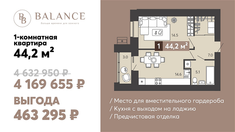 Квартира недели в ЖК «Баланс» по выгодной цене