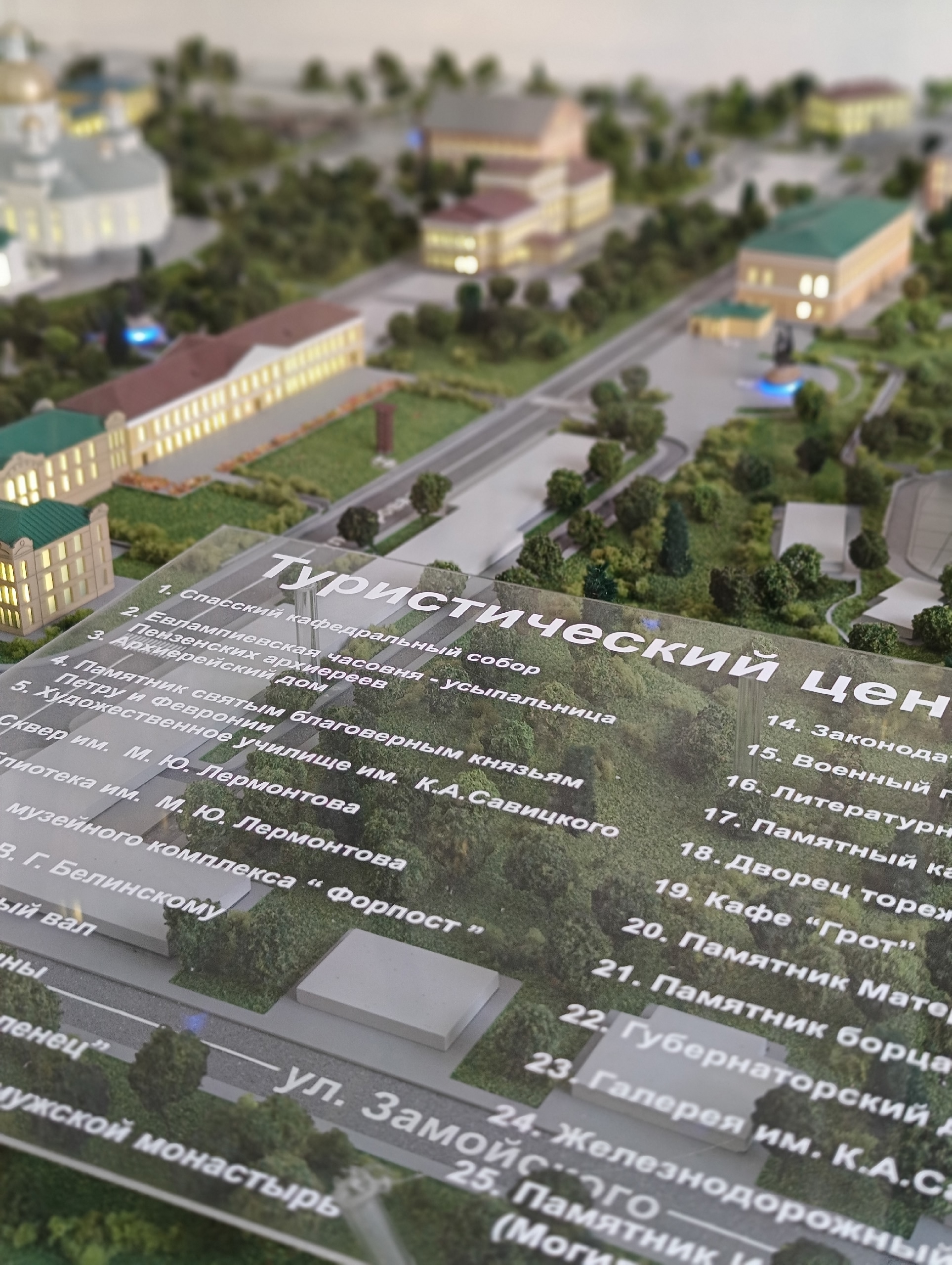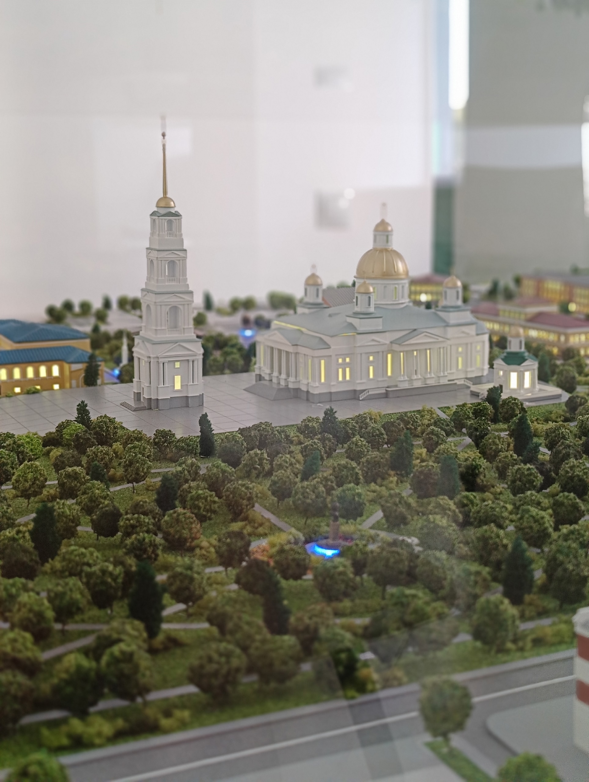 11 августа 2025 г., РИА Пензенской области. Детализированный макет туристического центра Пензы, где архитектурной доминантой выступает Спасский кафедральный собор, теперь доступен для изучения в Музее Пензенской епархии.