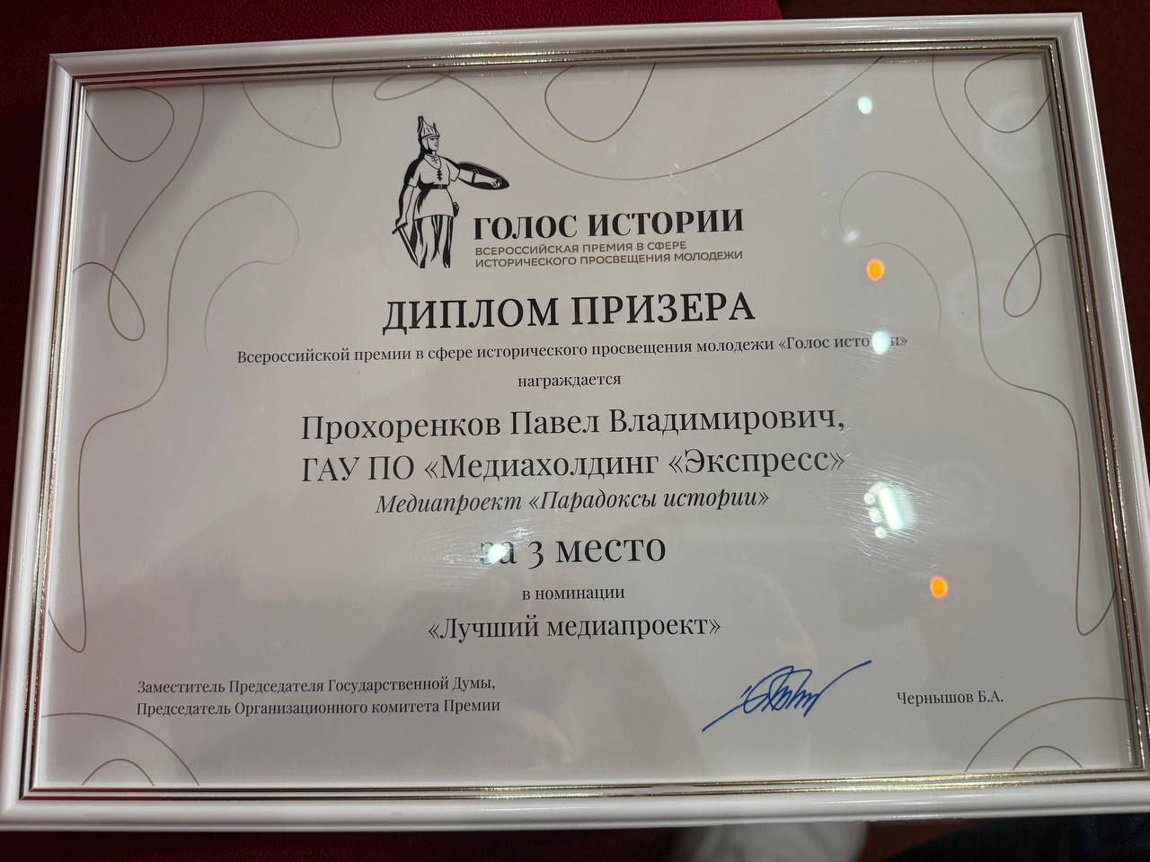 «Парадоксы истории» исполнительного продюсера медиахолдинга «Экспресс» Павла Прохоренкова вошли в топ-3 в номинации «Лучший медиапроект».