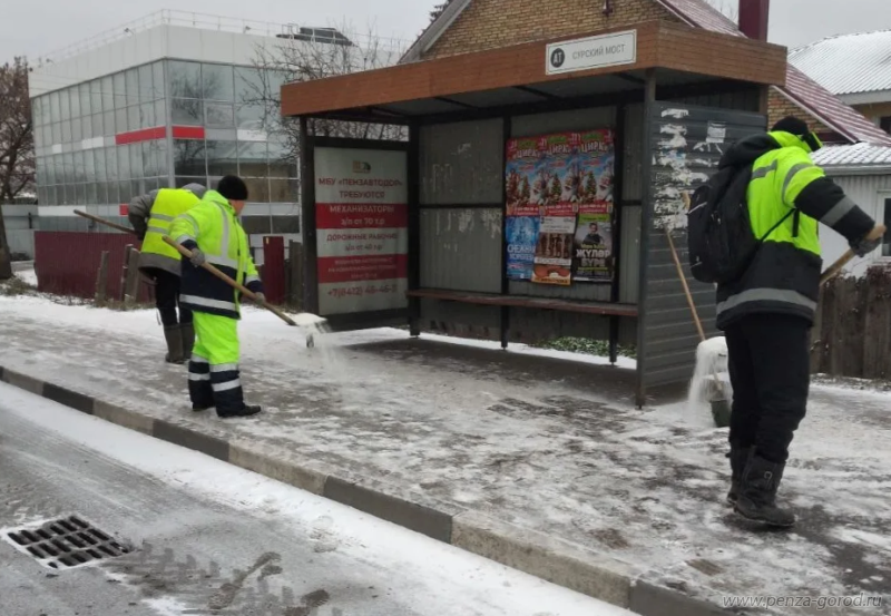 МБУ «Пензавтодор» получило задание своевременно обрабатывать антигололедными материалами спуски, подъемы, мосты, тротуары и подходы к пешеходным переходам, а также направить бригады ручного труда на узкие участки. В ночь на 10 декабря на улицы было выведено 54 единицы спецтехники, а днём работают уже 120 машин, которые очищают проезжую часть, тротуары, остановки и пешеходные переходы.