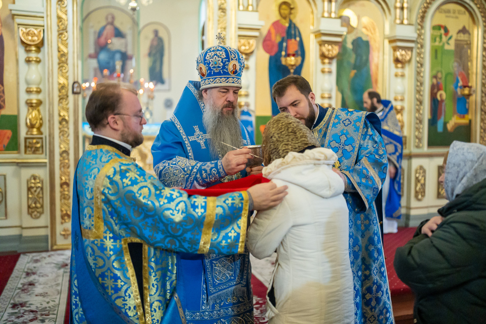 Архипастырю сослужили протоиерей Владимир Ольхов, настоятель Введенской церкви мкр-на Веселовка иерей Сергий Козелков, иерей Георгий Насонов, диаконы Богдан Яворский и Кирилл Вейго иеродиакон Варфоломей Шагаев.