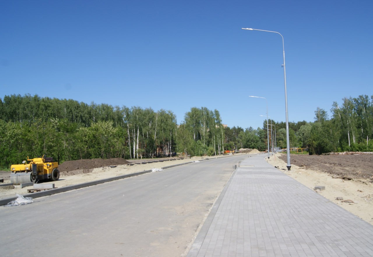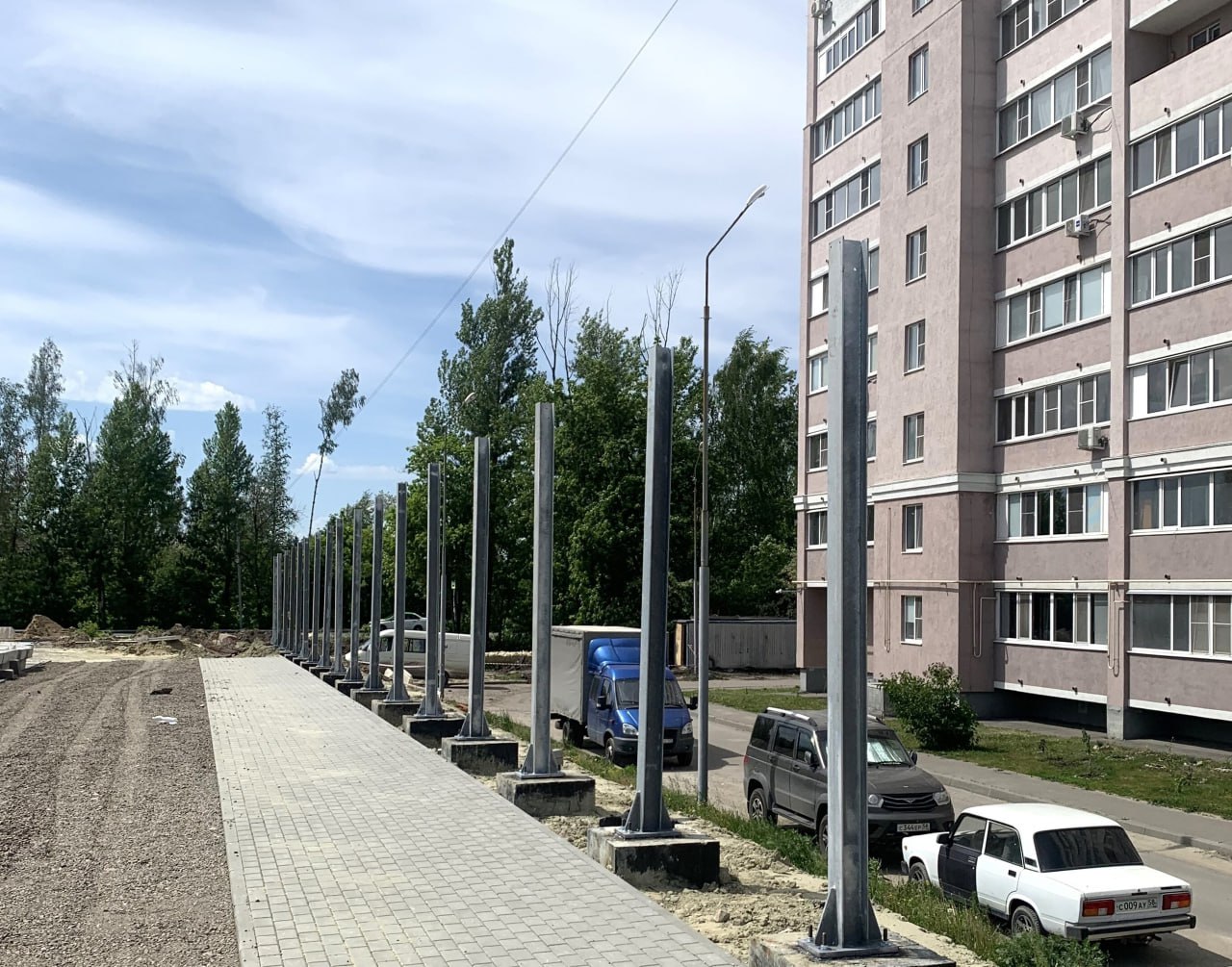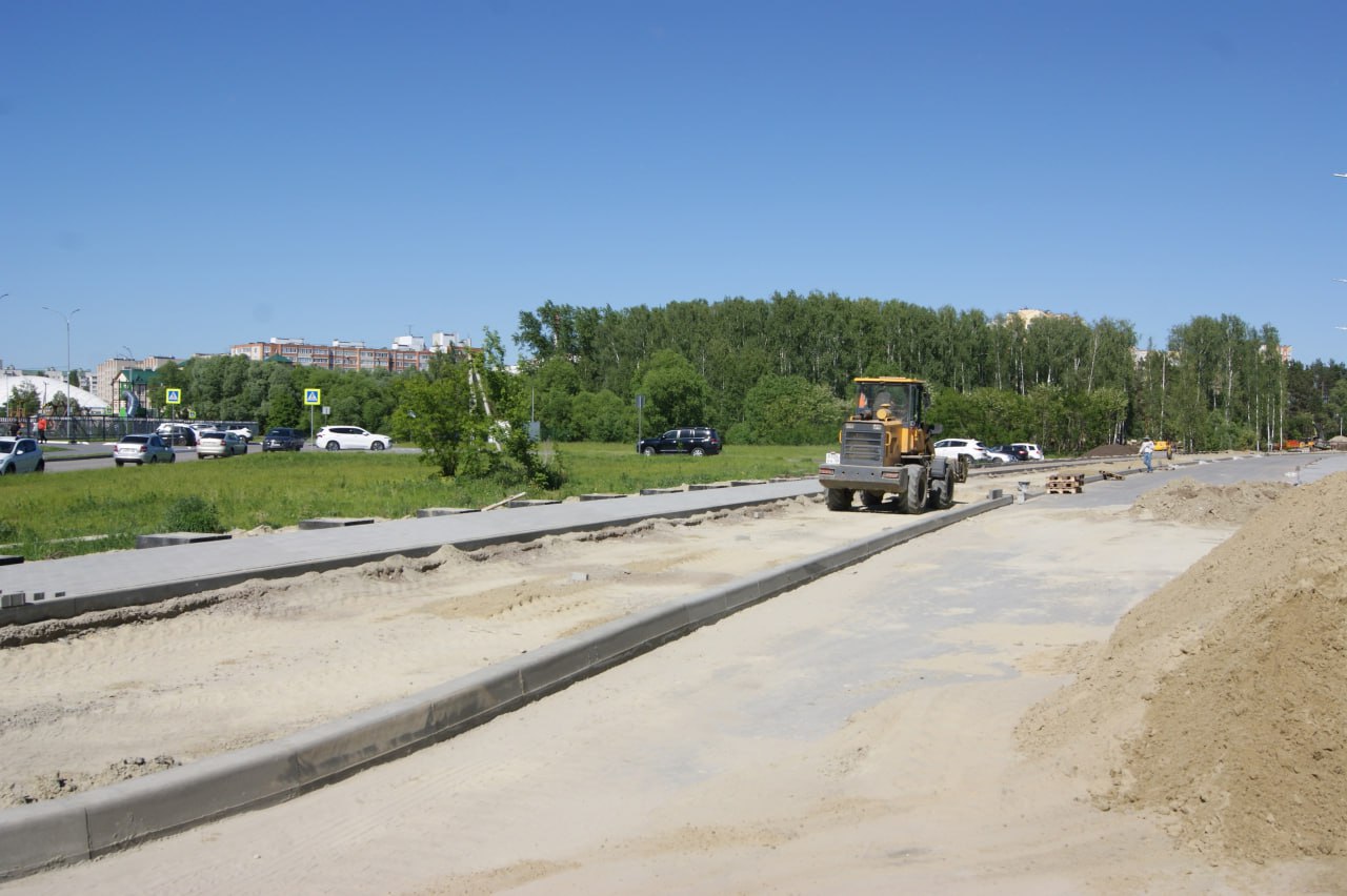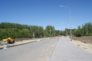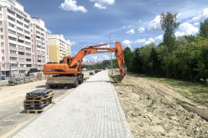 Уже уложены слои асфальтобетона. Сейчас специалисты укладывают тротуарную плитку и устанавливают бордюры.