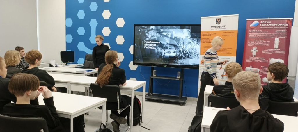 В завершении встречи студентам показали видеоролик Пензенского РО, который занял 1 место в конкурсе Союза машиностроителей России «Семейная летопись Победы».