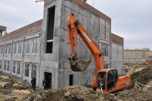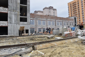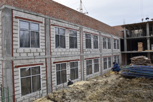 Строительство учебного заведения идет в соответствии с графиком. В настоящее время завершается возведение конструкции самого здания школы, продолжаются работы по обустройству инженерных коммуникаций.