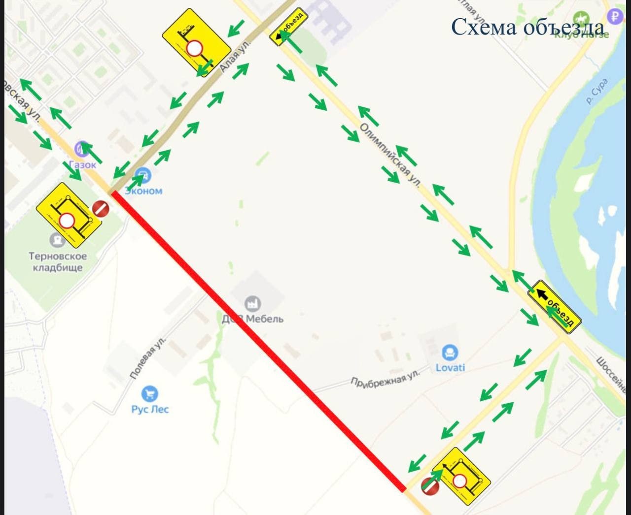 Ограничение действует с 7 по 27 октября ежедневно с 7:00 до 20:00. На это время водителям придется двигаться по улицам Алой и Олимпийской в селе Засечном.