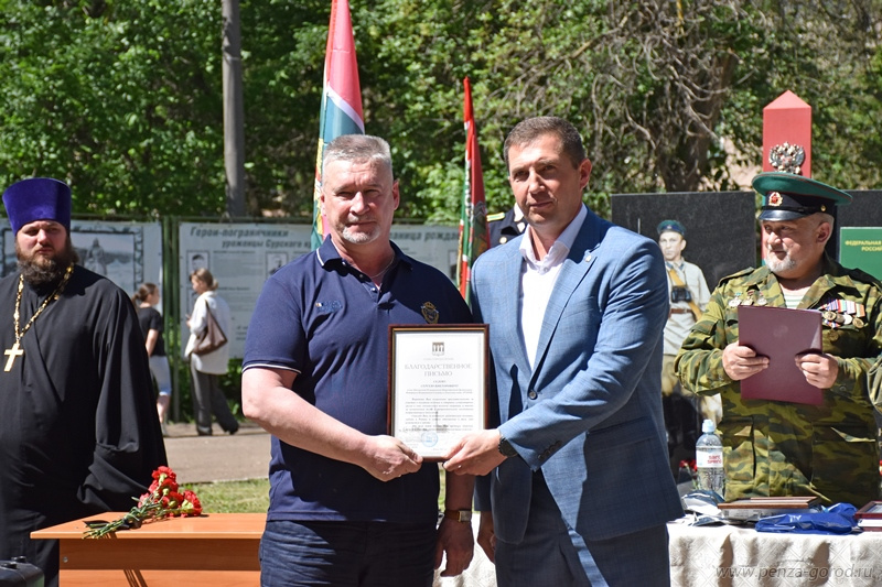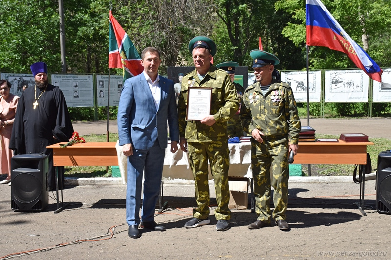 На митинге региональной общественной организации ветеранов пограничной службы и локальных войн «Рубеж» была вручена Благодарность губернатора, а также Почетная грамота главы Пензы за активную военно-патриотическую работу и поддержку бойцов специальной военной операции.