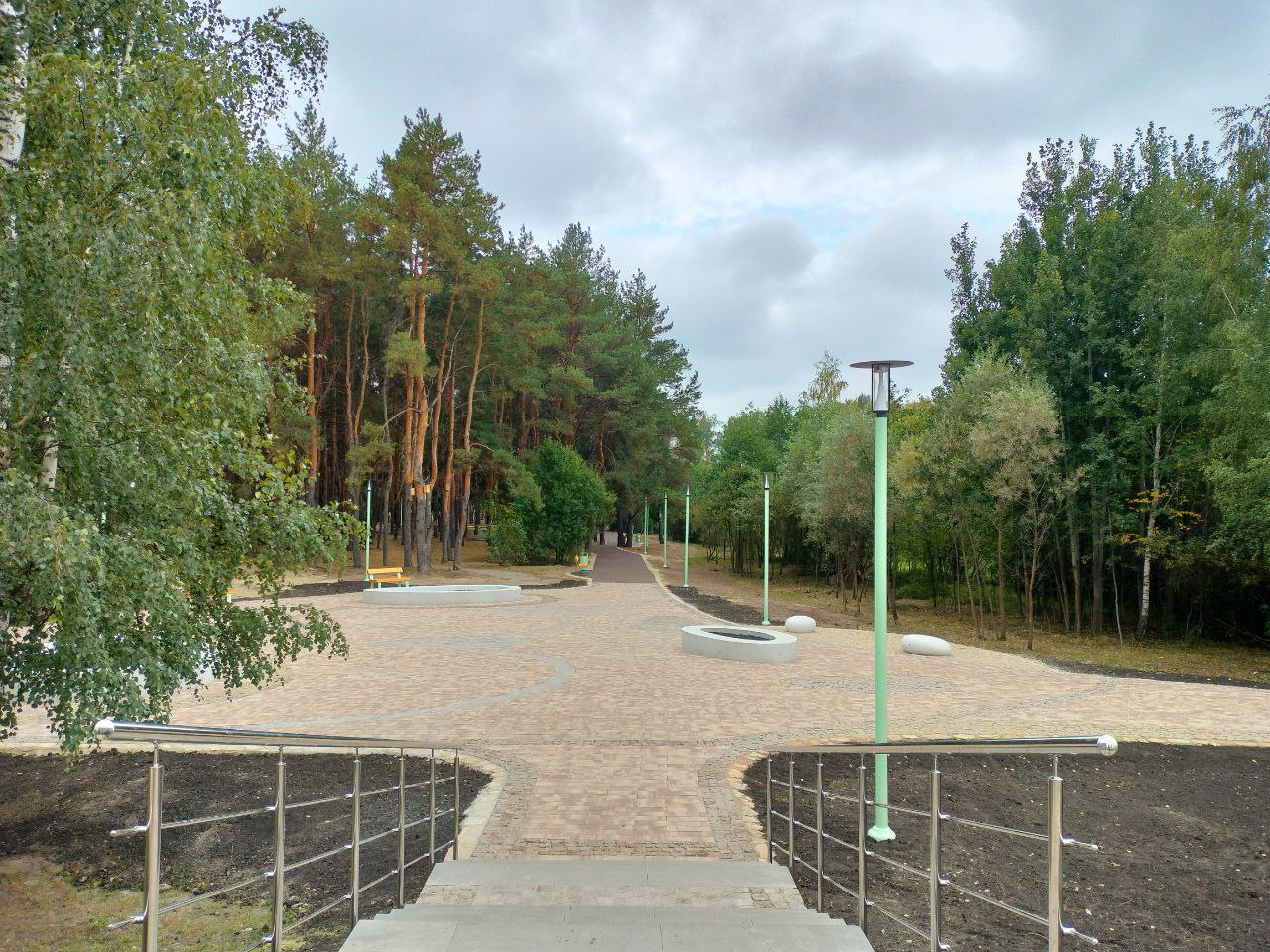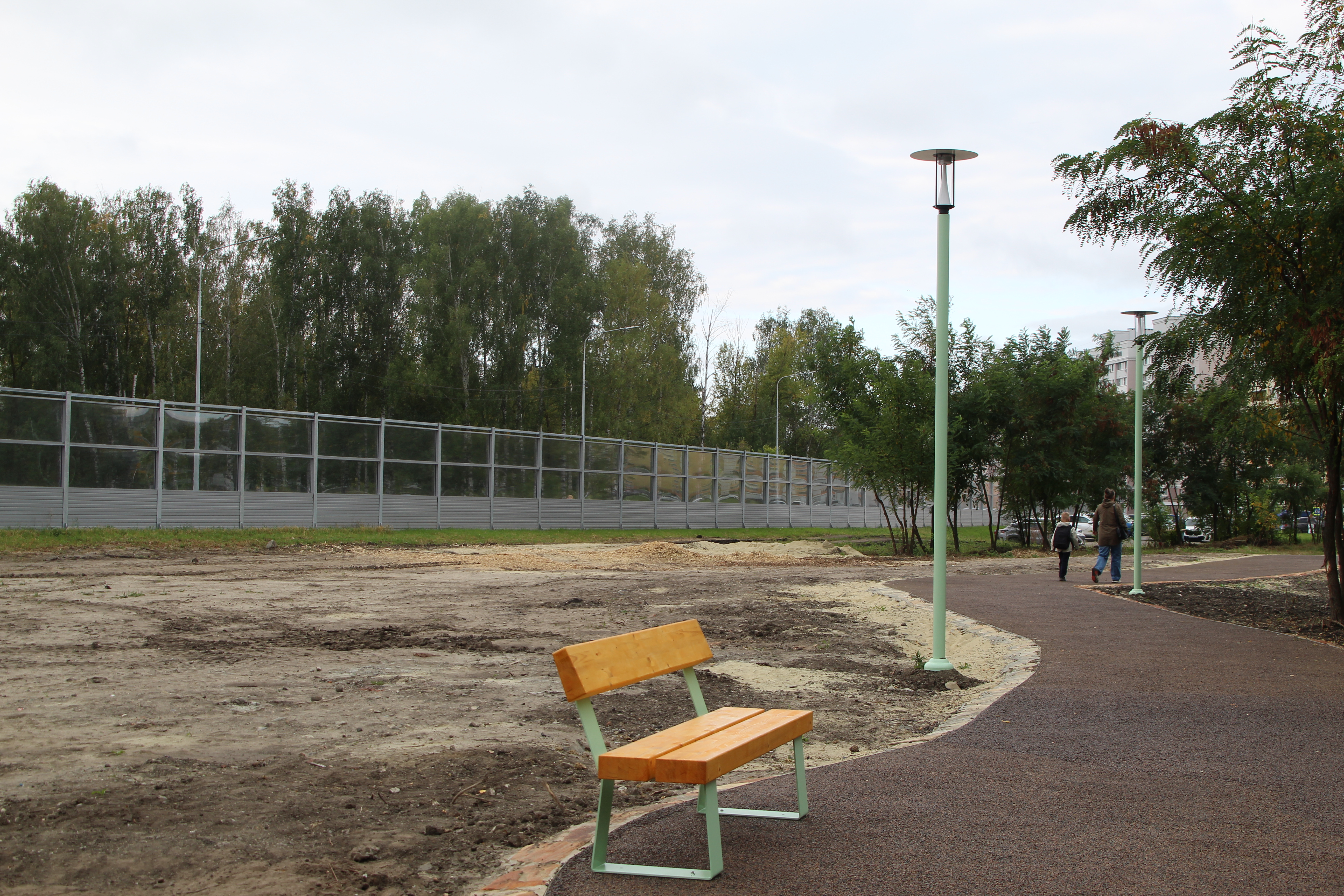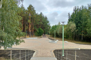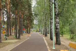 «Первый запрос, который был у нас от жителей, чтобы парк не испортил привычную для них среду - естественную, природную. Мы не делали здесь котлованов, чтобы проложить дорожку, прежде всего с заботой о деревьях. Решетка укладывалась сверху на песок, на геотекстиль, и уже она заполнялась гранитным отсеком со связующим. Покрытие получилось плотное, но в основе ее лежит пластиковая георешетка», - пояснила она.
