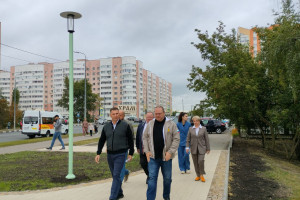 В экскурсии по площадкам сквера приняли участие руководитель субъекта РФ Олег Мельниченко, глава администрации города Олег Денисов и директор парка культуры и отдыха имени В.Г. Белинского Елена Савельева.