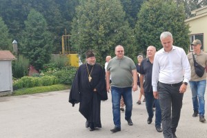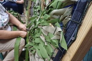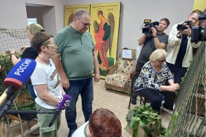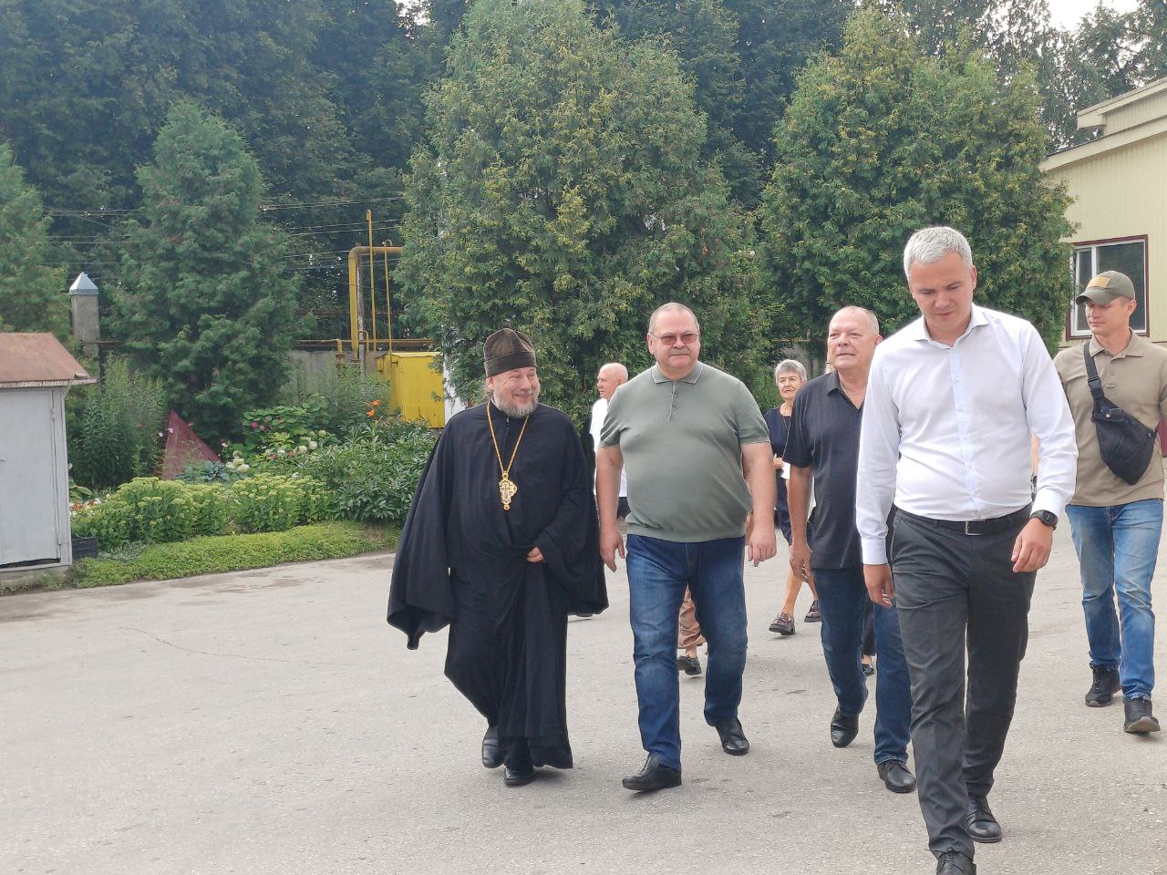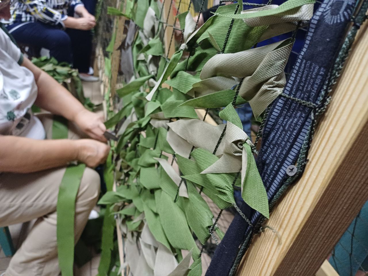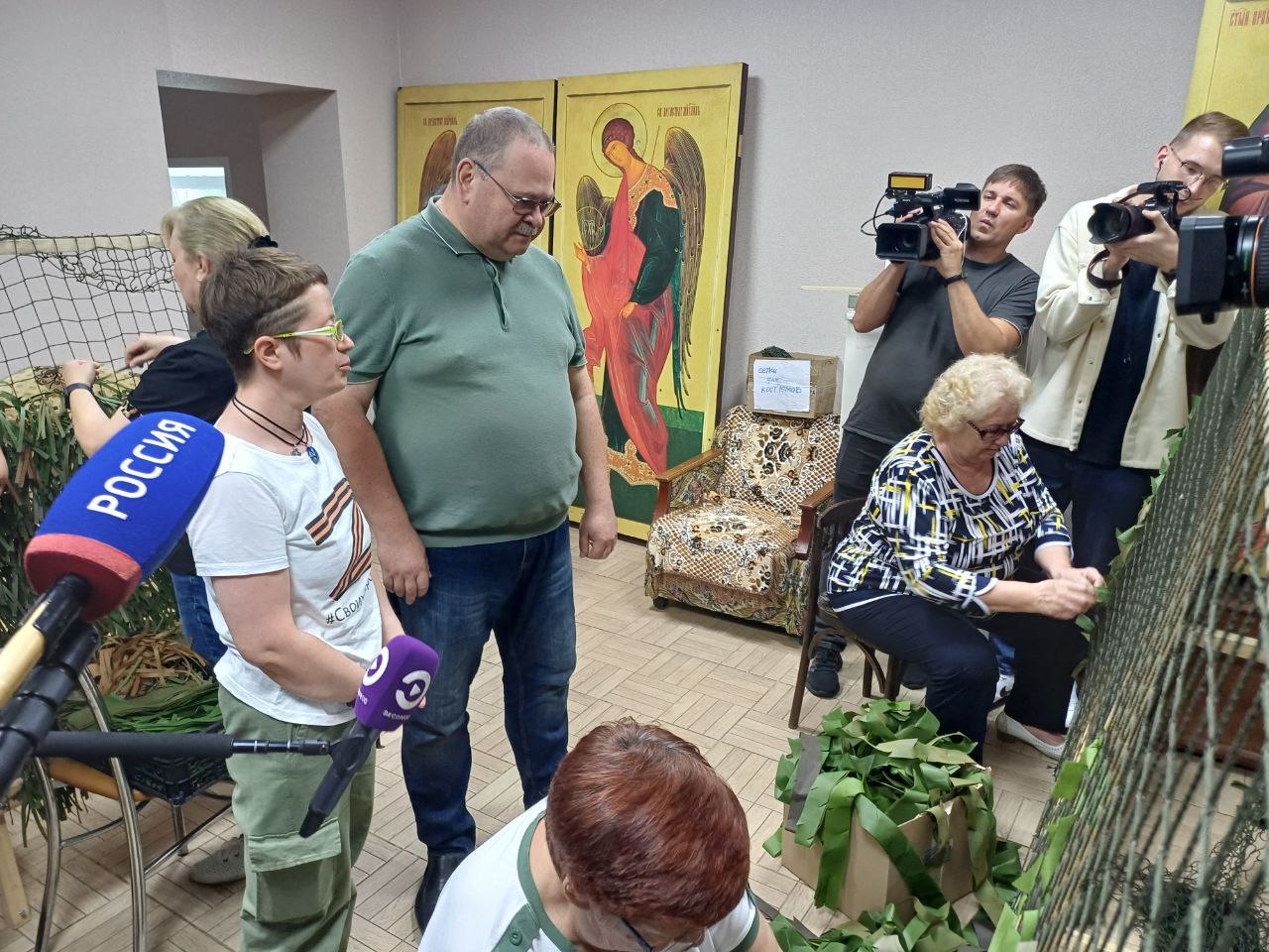 После этого Олег Владимирович посетил Церковь Воскресения Христова, где местные добровольцы изготавливают маскировочные сети для участников специальной военной операции.