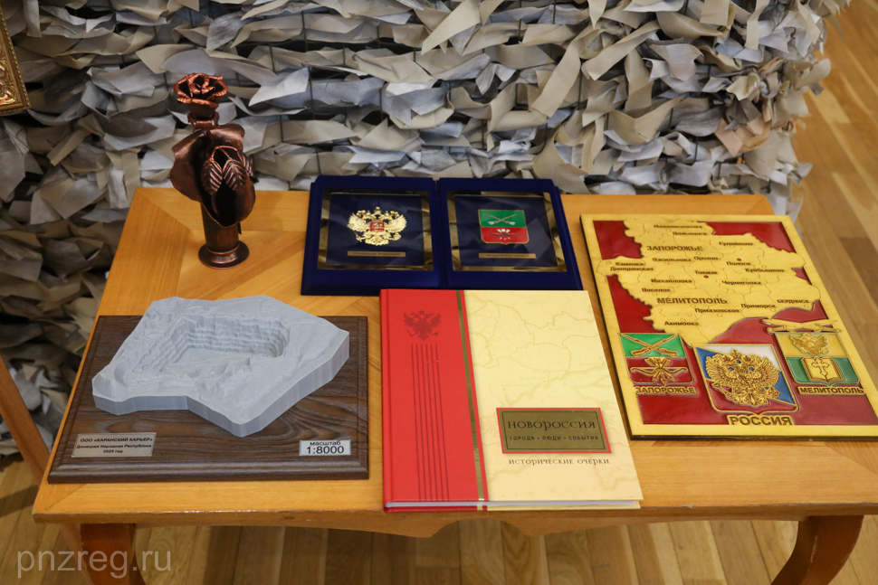 «Я недавно вернулся из рабочей командировки, - рассказал Олег Мельниченко. – Наши коллеги передали пензенцам сувенир с изображением Запорожской области и наших подшефных районов - Токмакского и Пологовского, книгу о Новороссии, макет Каранского карьера, где пензенская компания «Мостовик» восстановила производство стройматериалов. А еще металлическая роза из Донецка – как символ стойкости жителей города и их веры в скорое возвращение мирной жизни».