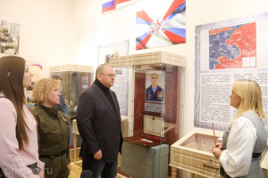 Центральная часть выставки посвящена Герою России, уроженцу города Пензы, Сергею Гринину, героически погибшему в битве за Авдеевку в октябре 2023 года. Родственники решили передать на постоянное хранение в Пензенский краеведческий музей его личные вещи, в числе которых Золотая звезда Героя.