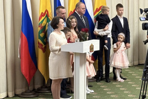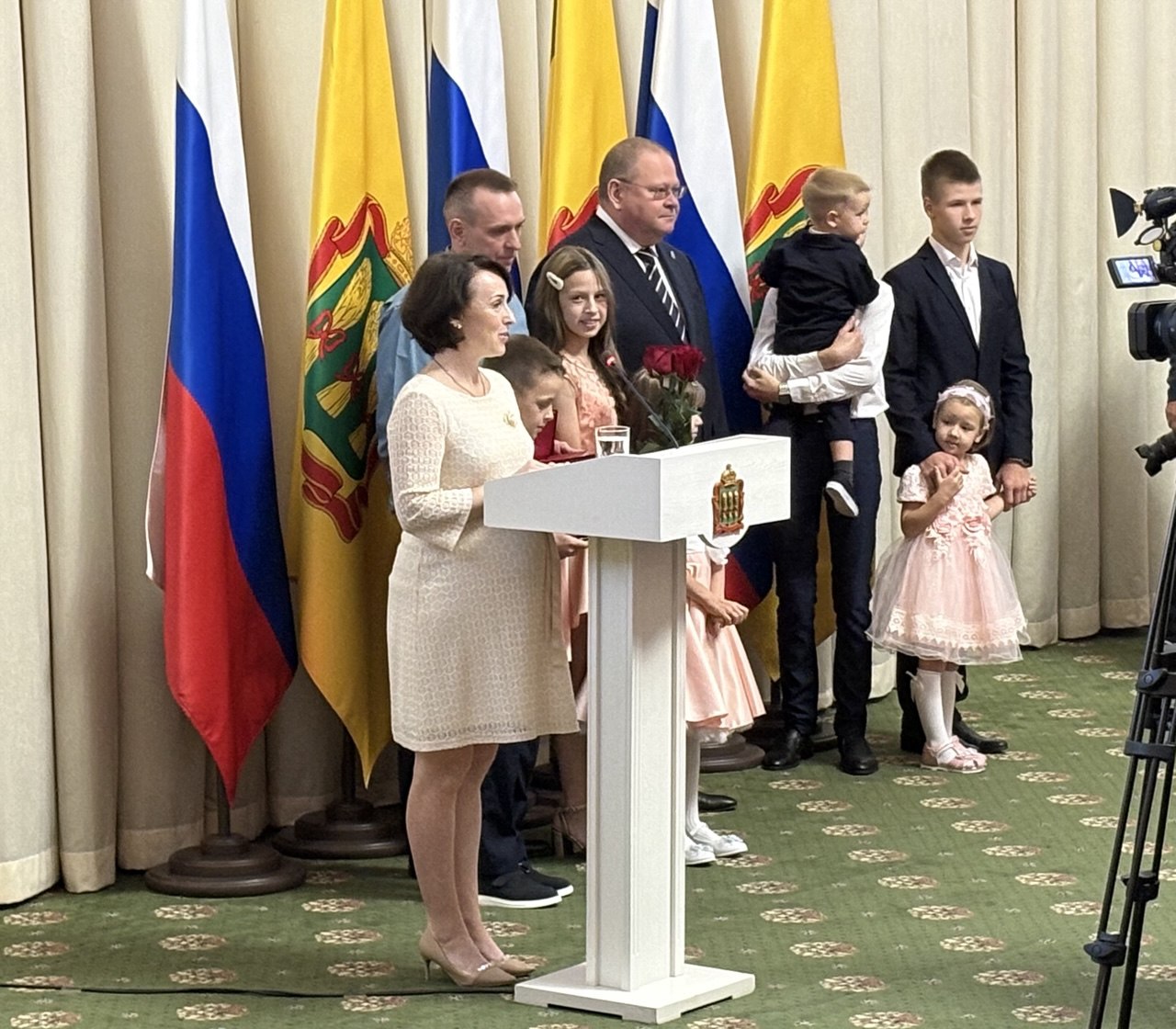 Особое внимание Олег Владимирович уделил многодетной семье Пронькиных, воспитывающей семерых детей - четверых мальчиков и трех девочек, которые хорошо учатся, занимаются музыкой и спортом. Родители получили орден «Родительская слава».