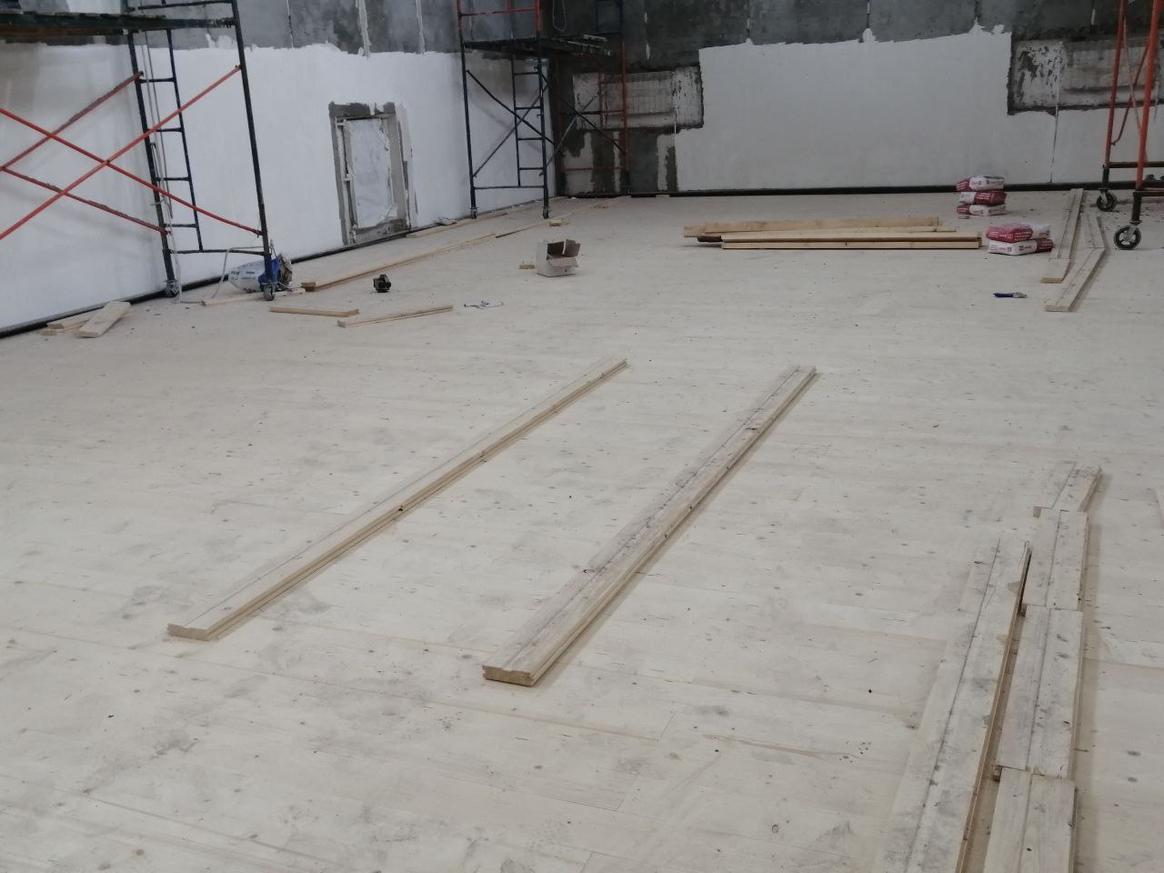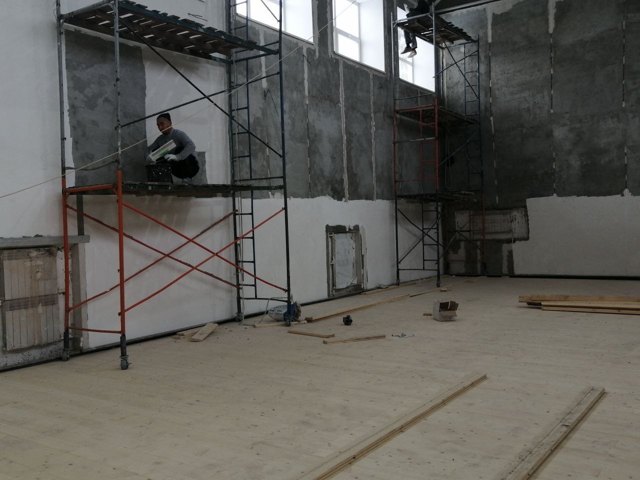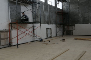 Он добавил, что завершено грунтование внутренних стен, началась их чистовая отделка. В планах - закончить уже 6 января монтаж полов в спортивном зале.