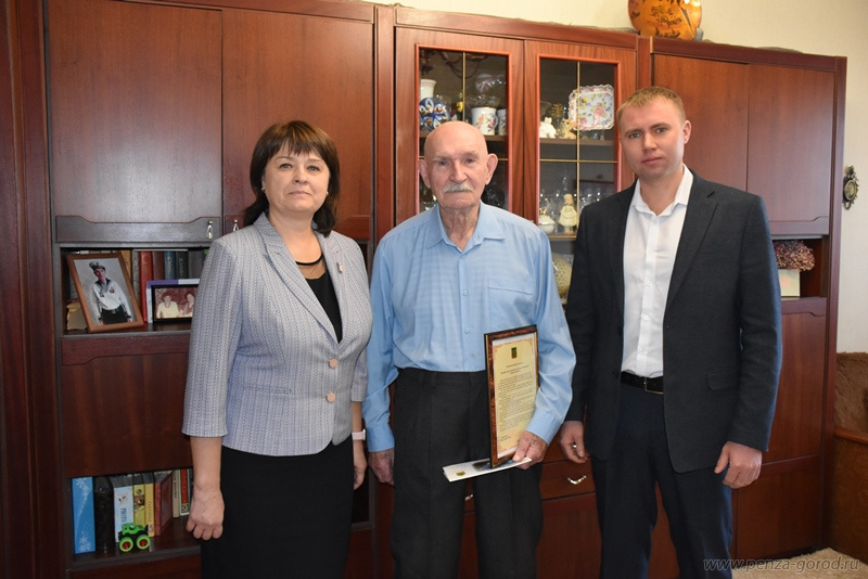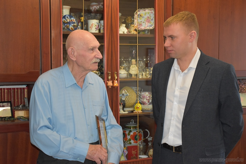 Первый заместитель главы администрации города Андрей Шиганков и начальник управления социальной защиты Елена Егорова посетили почетного гражданина Пензы Виктора Городнова в день его 98-летия.
