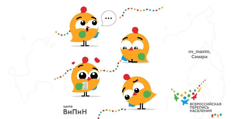 Среди почти 900 персонажей, которые предлагали россияне из 74 регионов страны, символами будущей переписи могли стать не только аисты, но и филины, жар-птицы, медведи, кони в яблоках и другие. Победила Цыпа и стала талисманом Всероссийской переписи населения.