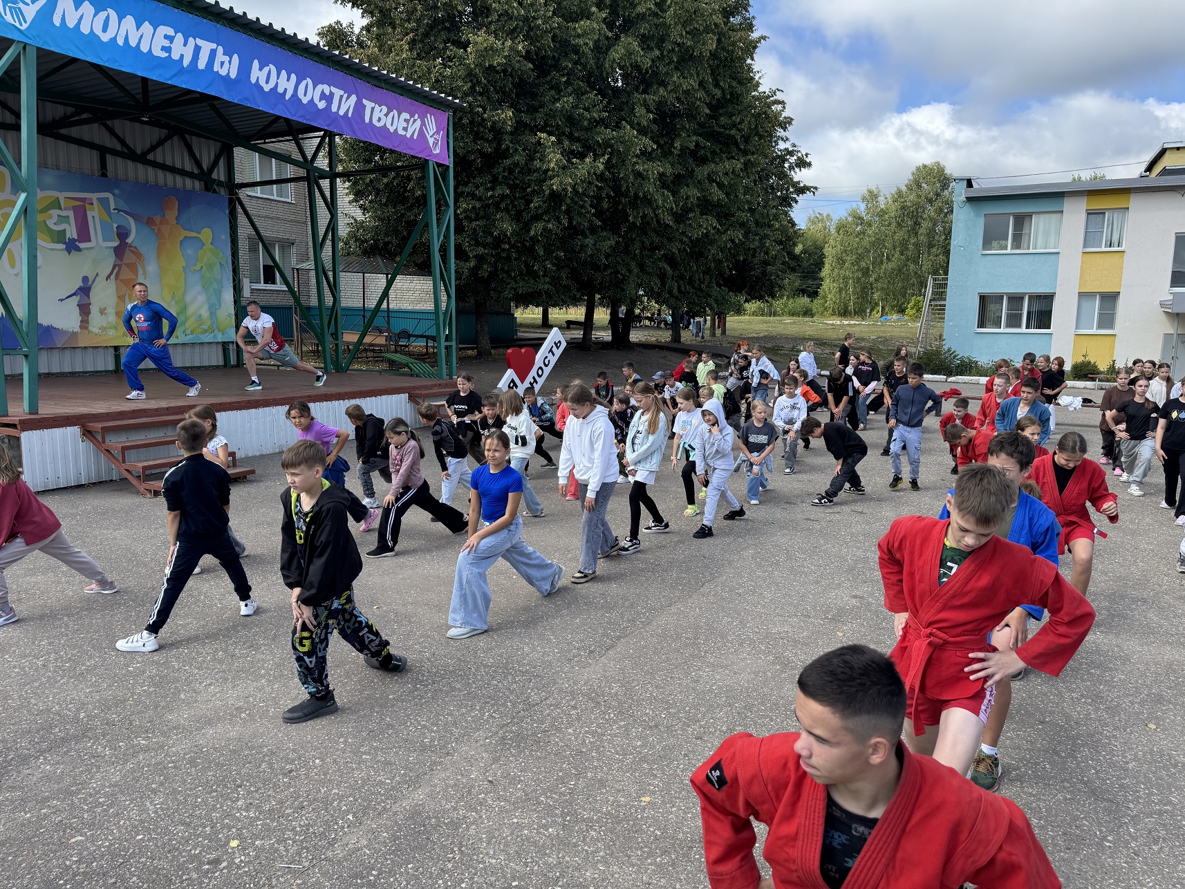 Под открытым небом неоднократные призеры чемпионата России по борьбе самбо продемонстрировали детям комплекс упражнений, доступный каждому. Атмосфера была наполнена позитивом и активностью.