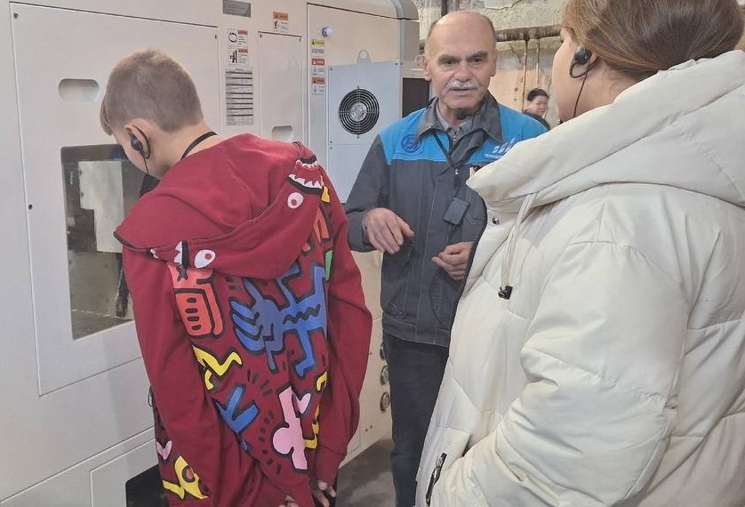 Начальник техбюро познакомил ребят с производственным циклом изготовления деталей на промывочном участке и участке термопластавтоматов. Также гости посетили цех со станками с ЧПУ.