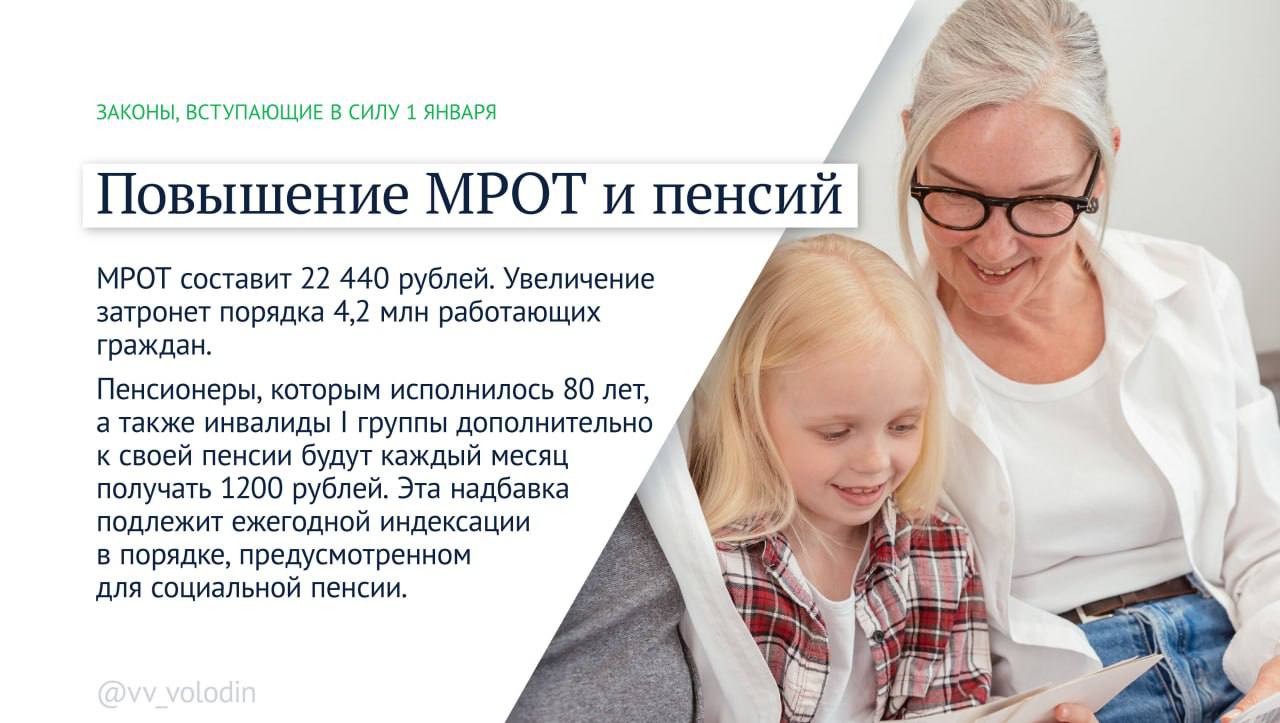 О законах, вступающих в силу с января 2025 года, рассказал в своем Telegram-канале председатель Государственной Думы Вячеслав Володин.