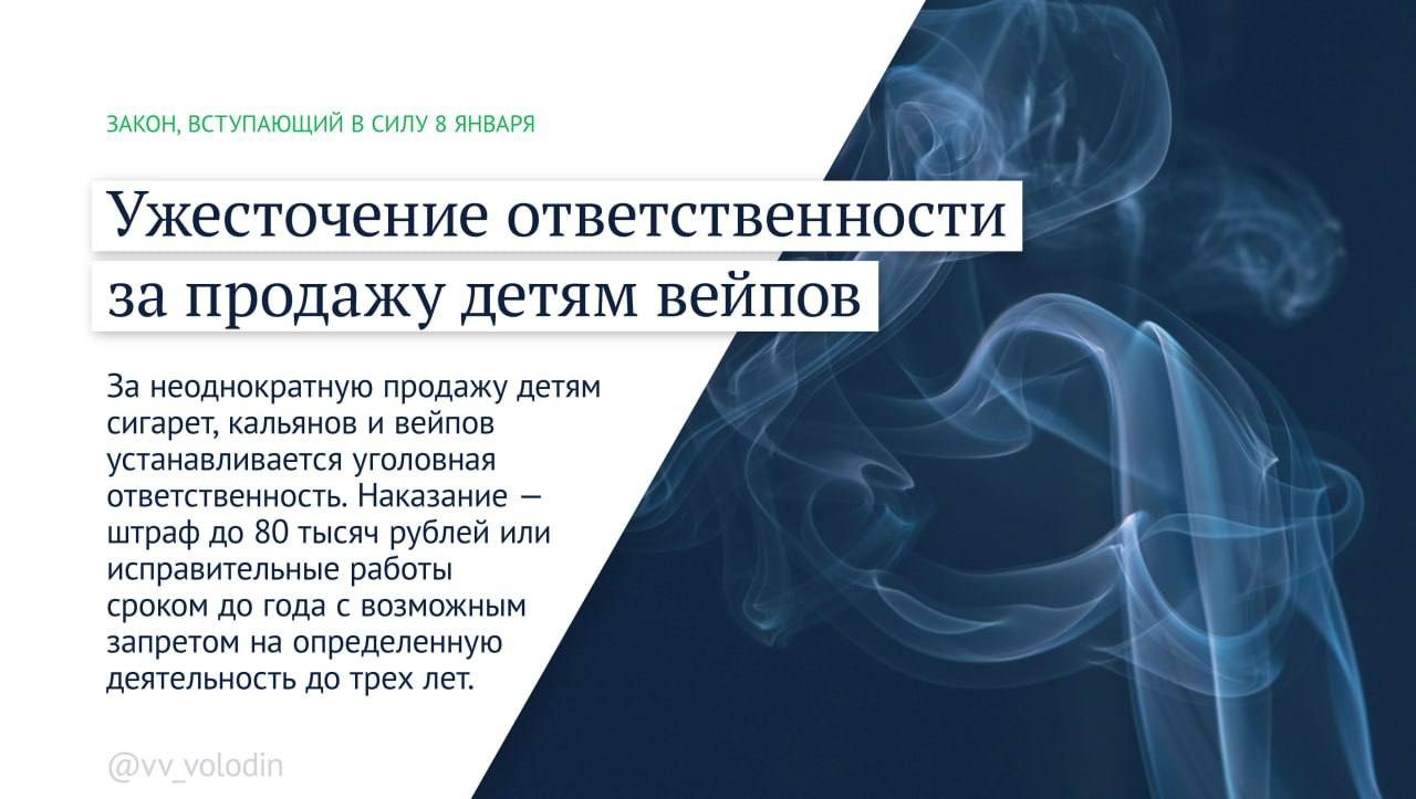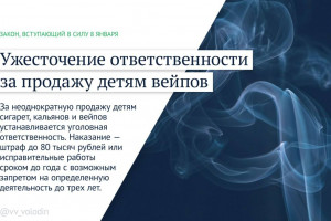 Кроме того, ужесточается ответственность за продажу вейпов несовершеннолетним.