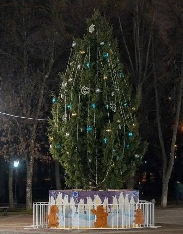 10 декабря 2025 г., РИА Пензенской области. По информации мэрии, на Соборной площади появилась украшенная новогодняя красавица города.