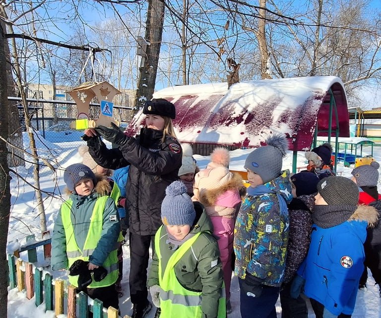 Инспектор провела с ребятами из детского сада беседу. Они успешно ответили на вопросы, продемонстрировав знания основ безопасности на дорогах.