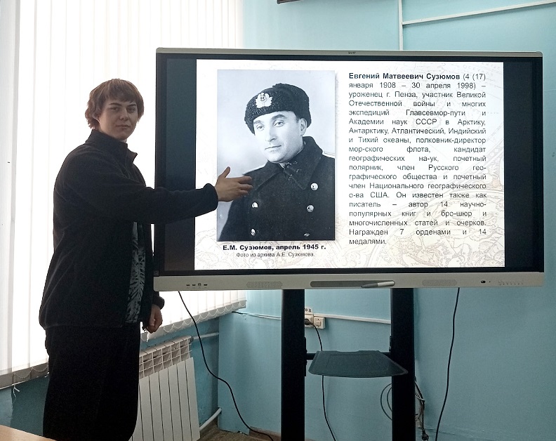 Преподаватель Светлана Макарова рассказала студентам о заслугах земляка, особое внимание уделив его боевому пути в годы Великой Отечественной войны и вкладу в организацию и проведение первой советской антарктической экспедиции (КАЭ-1 СССР) в 1955-1956 годах.