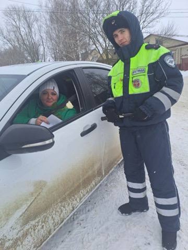 В преддверии Международного женского дня инспекторы приняли участие в ежегодной Всероссийской акции «Цветы для автоледи».