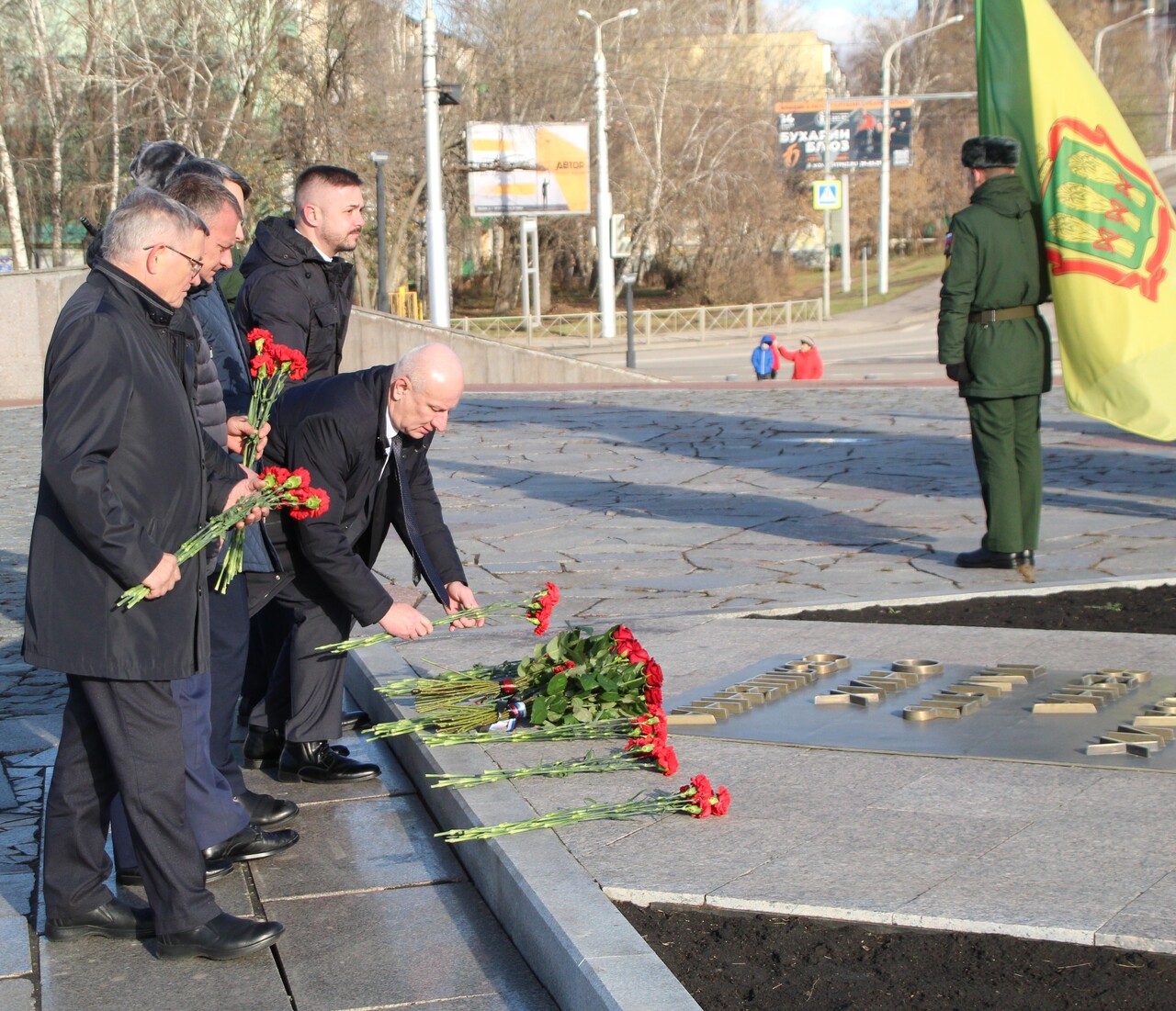 В Пензе прошла торжественная церемония возложения цветов к Монументу воинской и трудовой Славы, состоявшаяся после заседания рабочей группы по сотрудничеству Пензенской области и Республики Беларусь.