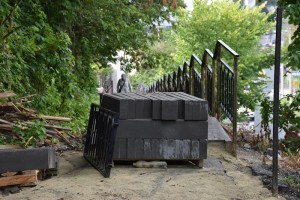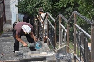 Подрядная организация уже выполнила основной объем работ. После демонтажа старых конструкций было обустроено новое, прочное основание лестничного марша. Установлены современные ступени из вибропрессованного камня, уложена тротуарная плитка, а также смонтированы бортовые камни и новые перильные ограждения, обеспечивающие безопасность и эстетичный вид.