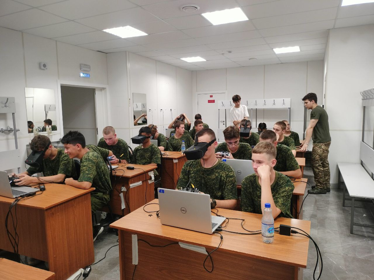 В виртуальной реальности участники отрабатывают пилотирование FPV-дронов и имитируют поражение целей, развивая точность наведения и скорость реагирования в условиях, приближенных к боевым.
