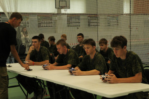 Молодые бойцы оттачивают навыки тактического управления FPV-квадрокоптером на сложной трассе с препятствиями. Особое внимание уделяется точности пилотирования и быстрой реакции, что критически важно для операторов беспилотных авиационных систем в военной сфере.