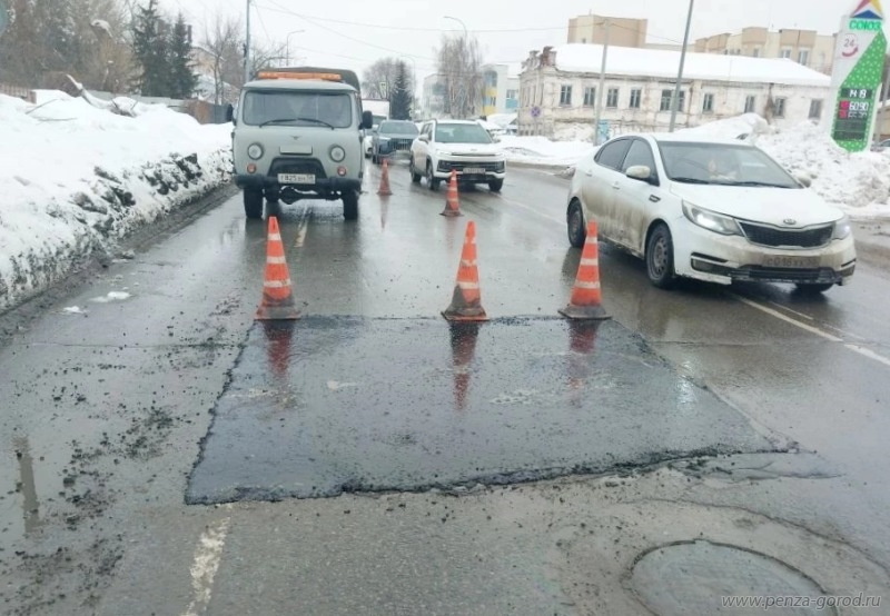 В Пензе сотрудники МБУ «Пензавтодор» ремонтируют дороги литым асфальтом. Как пояснили в администрации города, эта технология дает возможность проводить мелкоямочный ремонт даже при минусовых температурах.