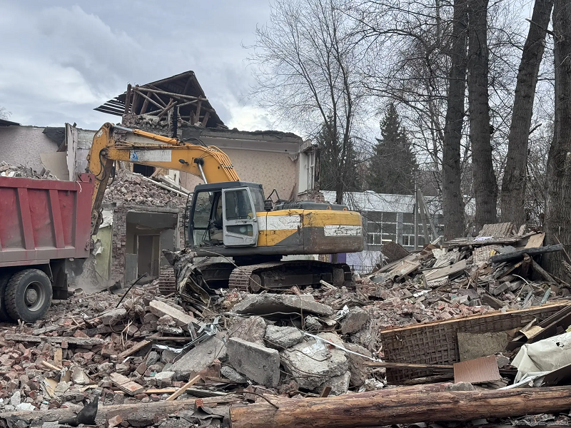 Рядом с демонтируемым зданием находится школа № 51, поэтому подрядной организации рекомендовано выполнять снос в выходные дни.