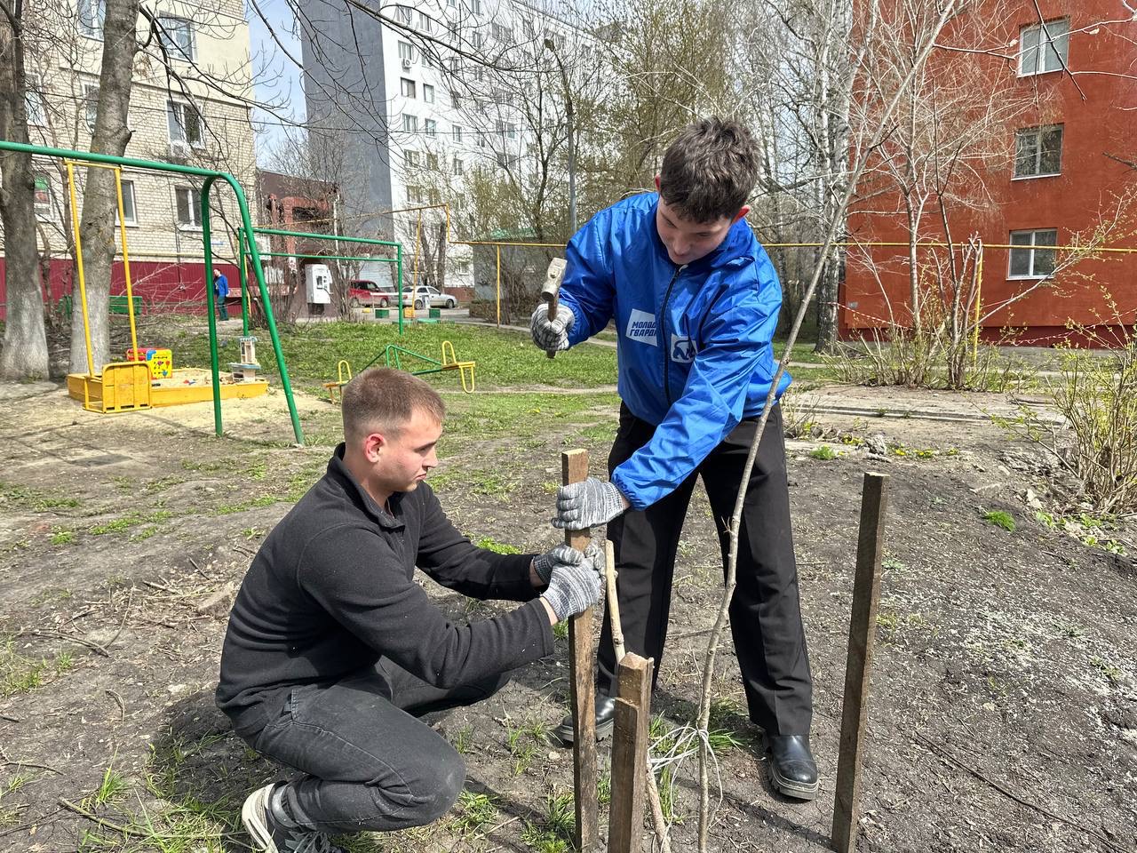 Во дворе дома на улице Карпинского, 50 молодогвардейцы Пензенского государственного университета собрали крупногабаритный мусор, спилили разросшиеся ветки деревьев. Для поддержки неокрепших стволов изготовили и установили специальные опоры. Также добровольцы навели порядок на детской игровой площадке.
