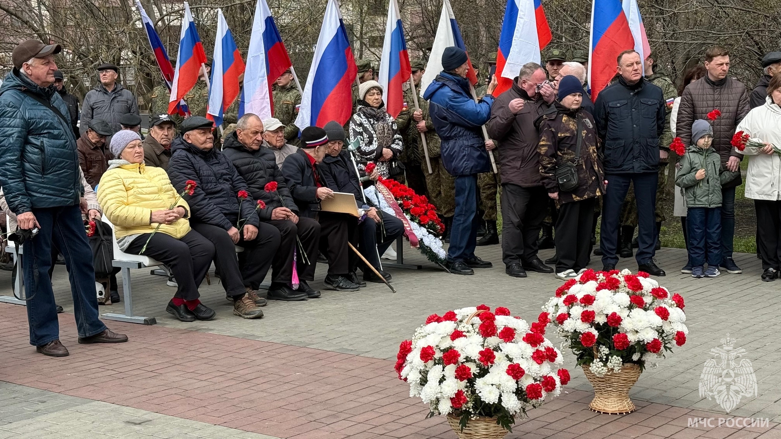 Были возложены цветы и венки к подножию мемориала, а также выпущены в небо шары - в знак памяти о погибших во время масштабного ЧП.