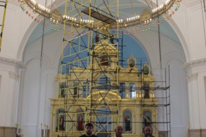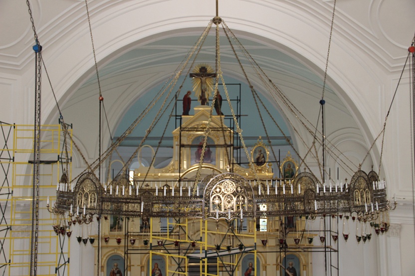 Параллельно с установкой светильников начались работы по монтажу центральной части иконостаса. По информации Пензенской епархии, его общая длина с учетом боковых приделов составит 40 метров. В трехъярусном иконостасе – 85 икон. Все они, а также основа и декоративные элементы были созданы в мастерской «Палехский иконостас».