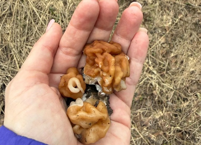 Фото своих находок они выкладывают в тематическом канале в МАХ. Так, уже есть первые весенние грибы - саркосцифа, похожая на красную чашечку, и светло-коричневые строчки, напоминающие мозг.