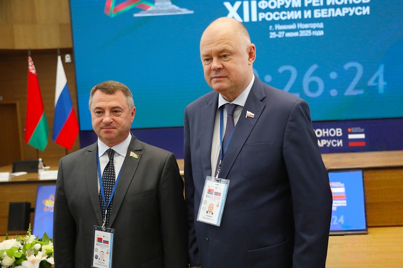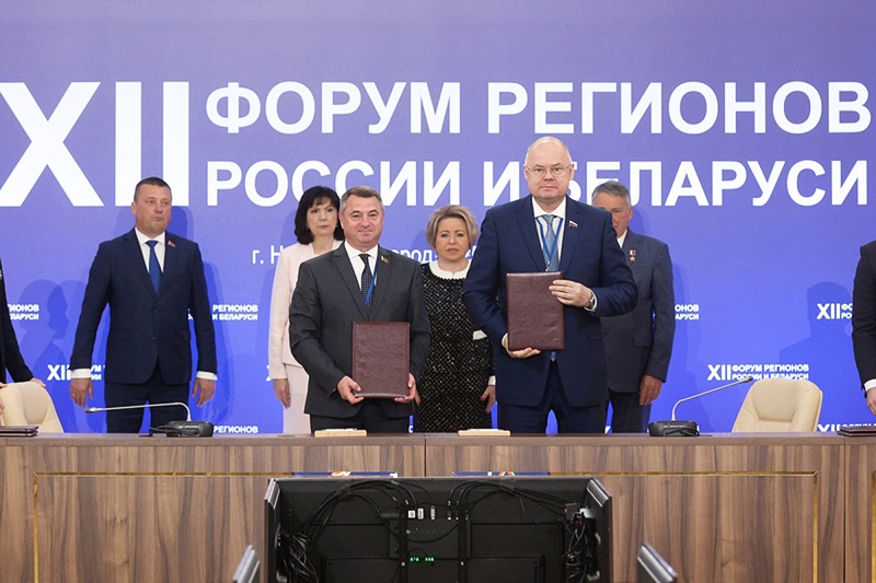 В Нижнем Новгороде, на полях XII Форума регионов России и Беларуси, в присутствии главы Совета Федерации РФ Валентины Матвиенко и председателя Совета Республики Нацсобрания Беларуси Натальи Кочановой спикер Законодательного Собрания Пензенской области Вадим Супиков и председатель Совета депутатов Могилёвской области Александр Горошкин заключили Соглашение между региональными парламентами двух стран, в пятницу, 27 июня 2025 года.